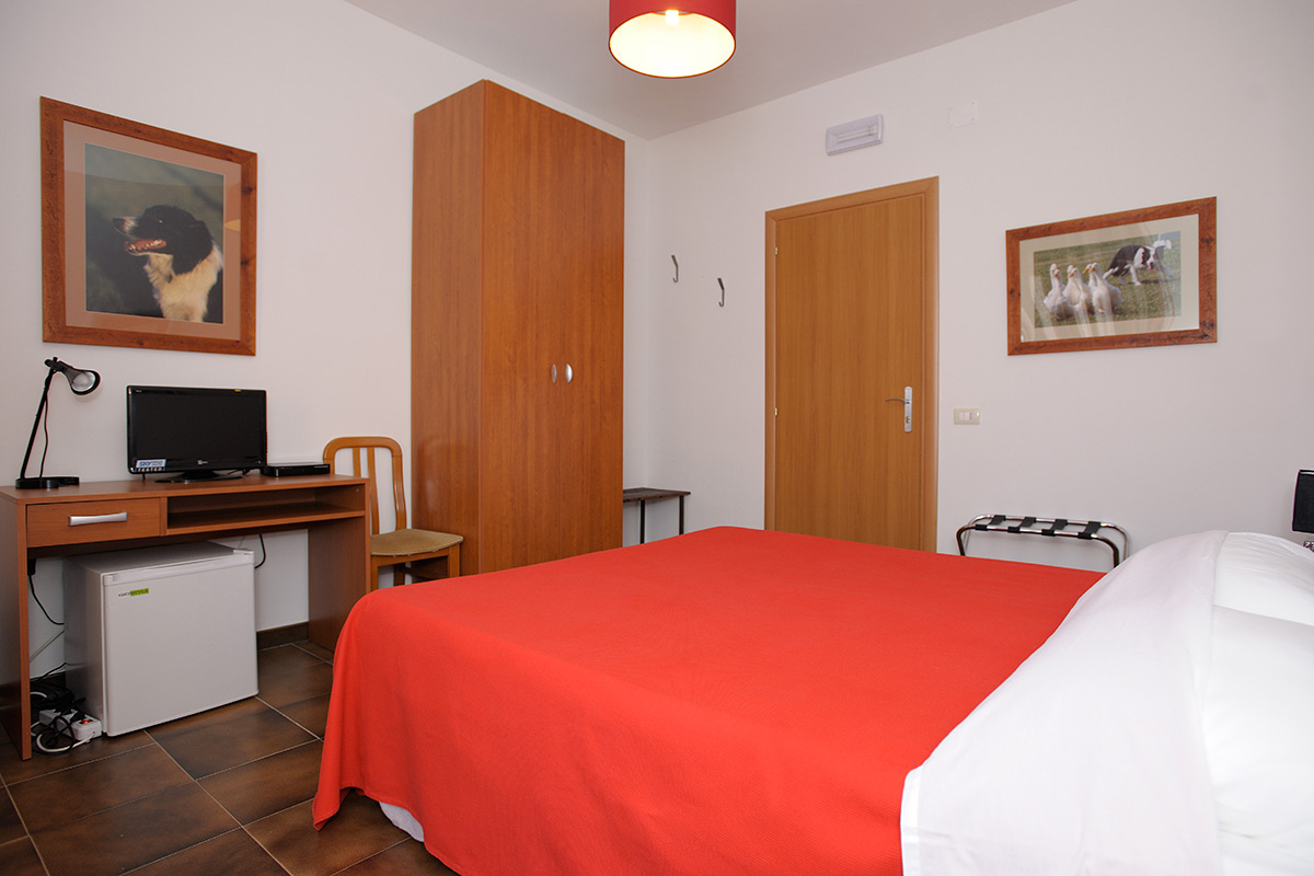La camera Border Collie è una doppia con letto matrimoniale , comoda e luminosa. Il bagno, ad uso esclusivo degli ospiti ,non si trova all’interno della camera ma è attiguo ad essa con una grande vasca da bagno. All’interno della camera vi sono in dotazione: frigo, phon, ampio set di cortesia, televisione LCD con decoder digitale satellitare TV sat, impianto di climatizzazione ad aria fredda e calda e connessione Wi-Fi.